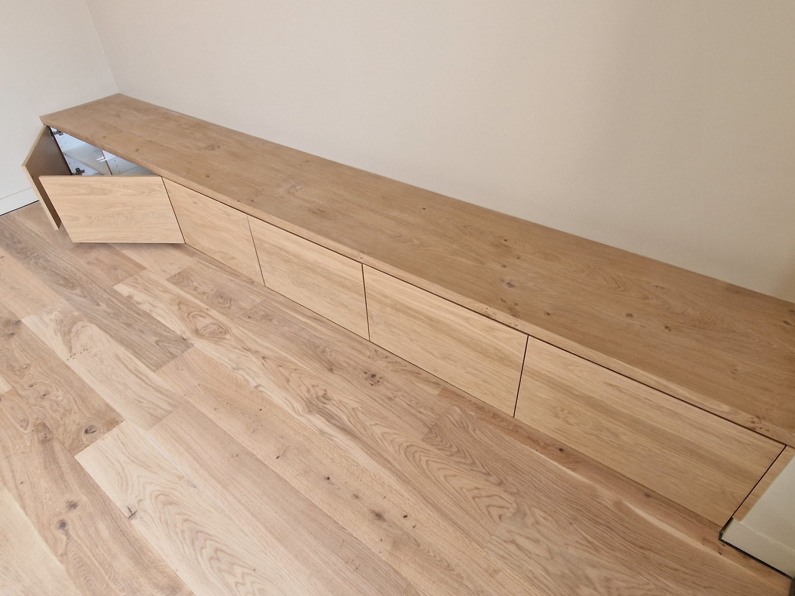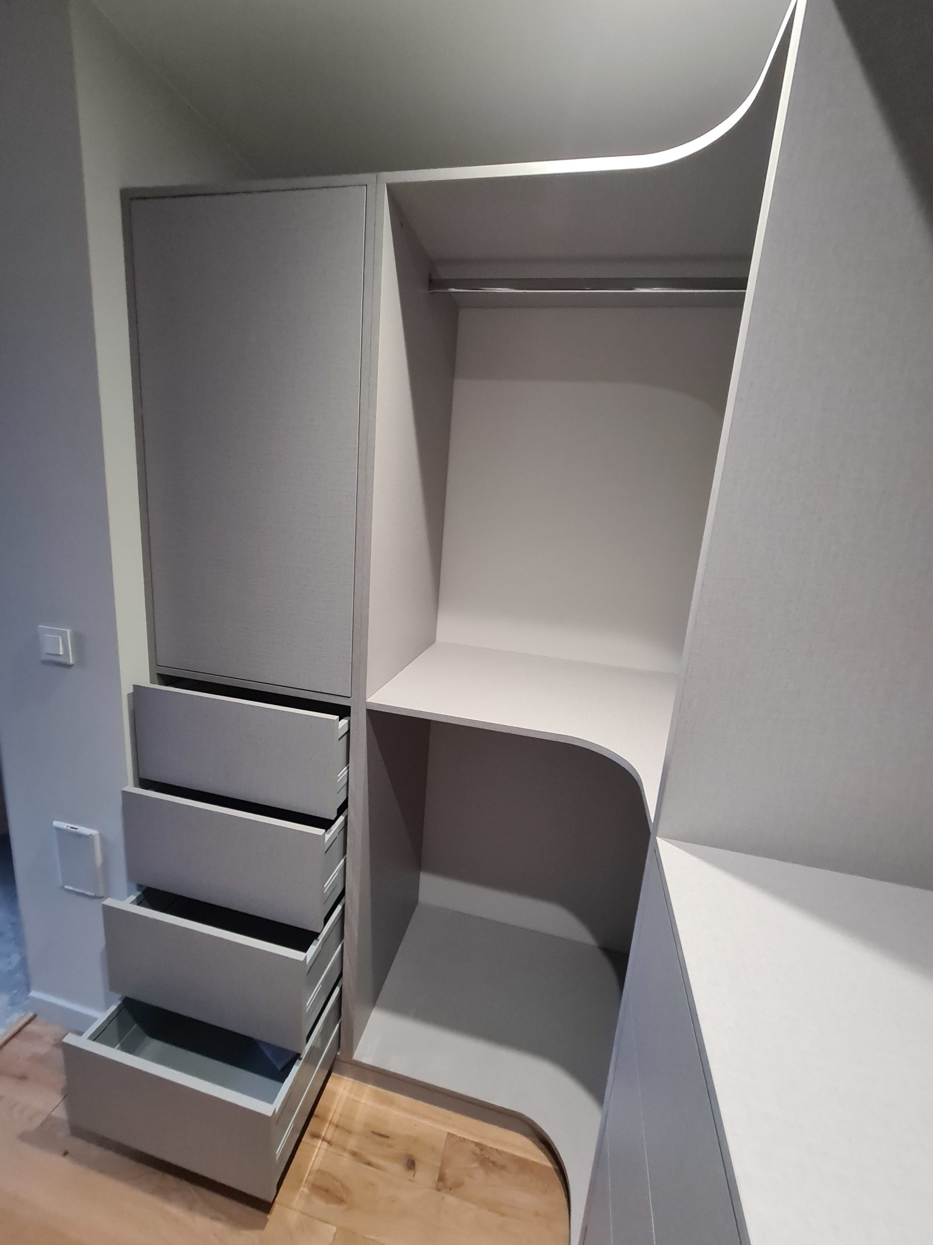 Nos menuiseries intérieures sont conçues sur-mesure pour s’adapter parfaitement à vos besoins et à votre espace. Chaque projet est unique, qu’il s’agisse de rangements, de meubles ou d’agencements spécifiques, avec des solutions personnalisées pour chaque style.