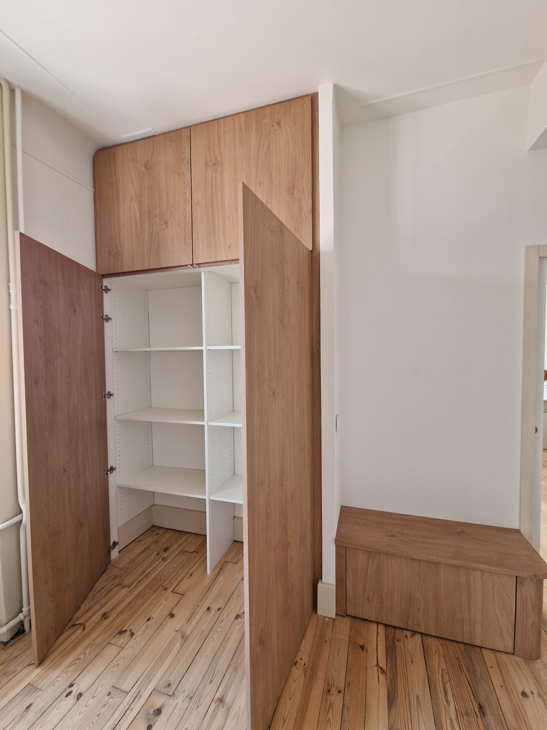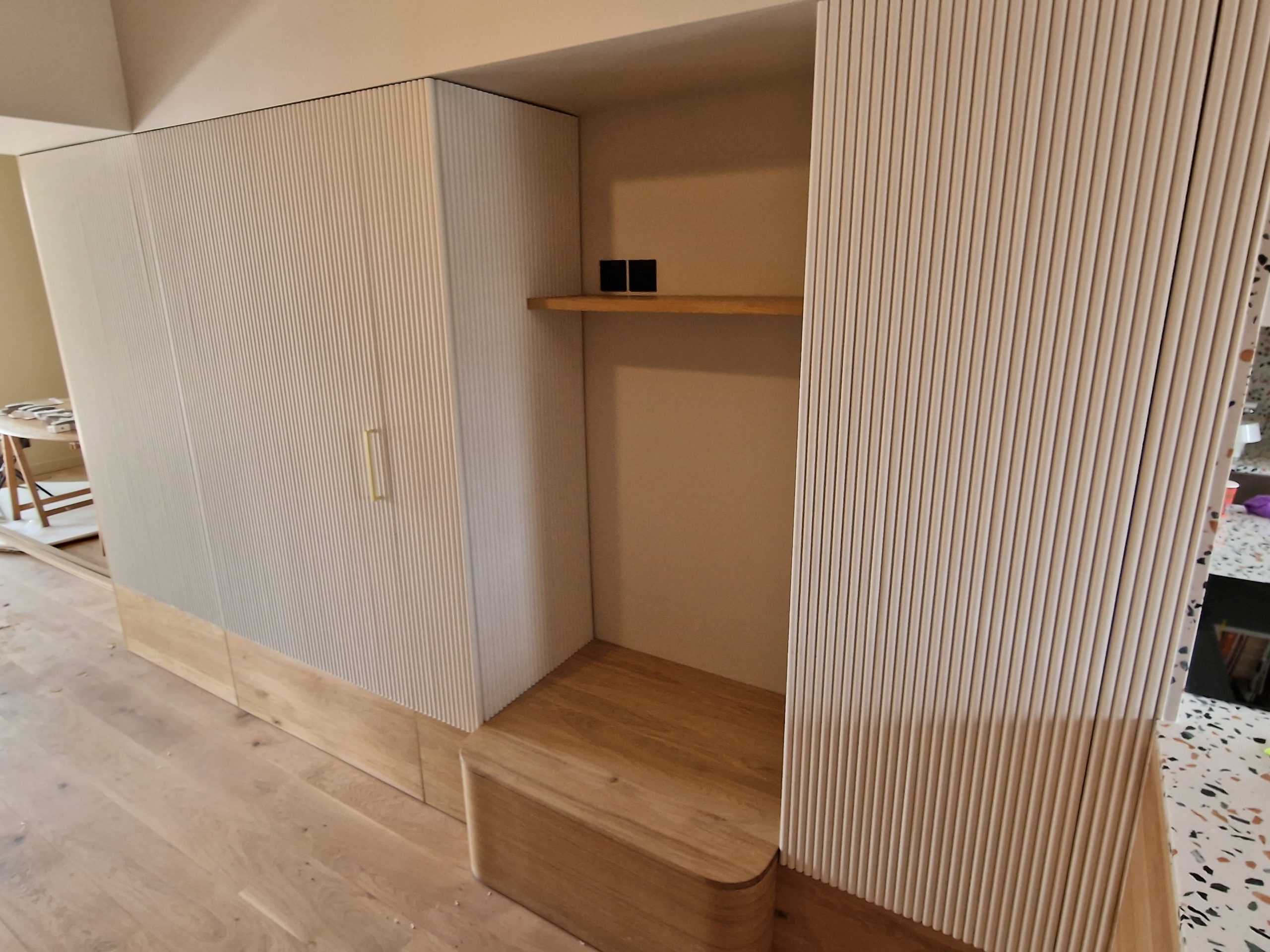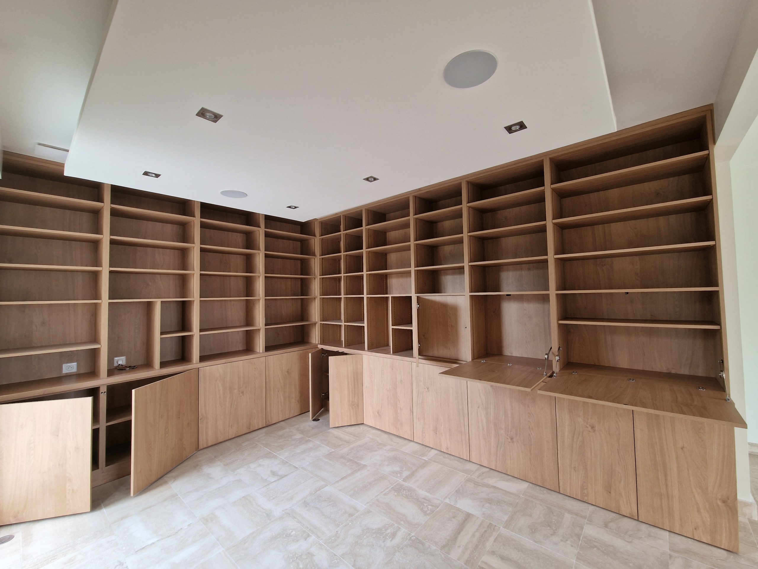- Rangements sur-mesure : Transformez un pan de mur ou une pièce exiguë en un dressing organisé ou une bibliothèque élégante.